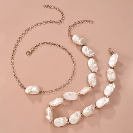 Not your ordinary pearl necklace Fashionable holiday style necklace set for women Can there really be too much jewelry? Of course not! Start off, or add to, your jewelry collection this unusually beautiful pearl necklace! A distinctive accessory piece that will set you apart from everyone else. Pearl necklace specifications…