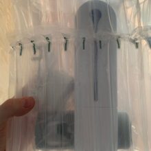 Our UV toothbrush station is built with one lithium-ion battery (included with purchase). A charger adapter comes with your order to help charge the device. The UV light fully charges in three hours, and provides 100 days’ worth of sanitization time.
