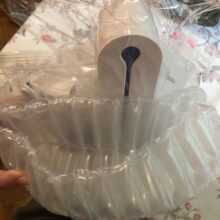 Remove the adhesive mounting pad from the toothbrush sanitizer.